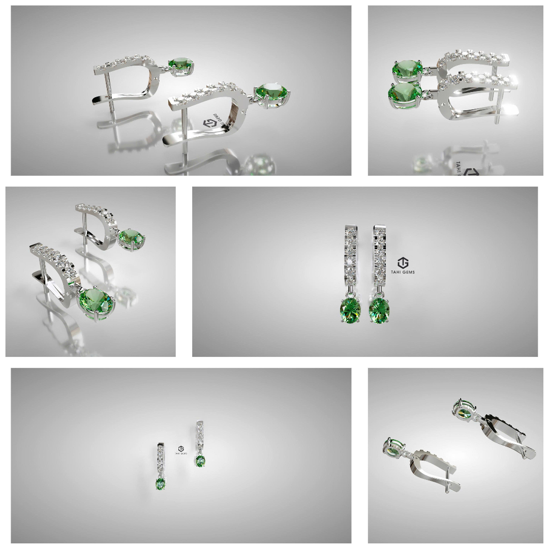 Sau khi thống nhất về chất liệu đá, TahiGems tiếp tục cùng anh lựa chọn kiểu dáng hoa tai sao cho phù hợp với phong cách đeo hằng ngày của vợ anh. Tiêu chí được đặt ra là thiết kế phải nhẹ nhàng, thanh lịch, dễ kết hợp trang phục, nhưng vẫn đủ tinh xảo để tạo điểm nhấn khi nhìn gần. Mẫu hoa tai được lựa chọn đáp ứng trọn vẹn những mong muốn đó, với bố cục cân đối và đường nét mềm mại, làm nổi bật vẻ đẹp tự nhiên của viên đá Peridot.