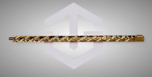 Tiếp nối phong cách nam tính và sang trọng đơn Tahi 7517, anh lựa chọn lắc tay vàng với thiết kế khỏe khoắn, từng mắt xích được tạo hình chuẩn xác.