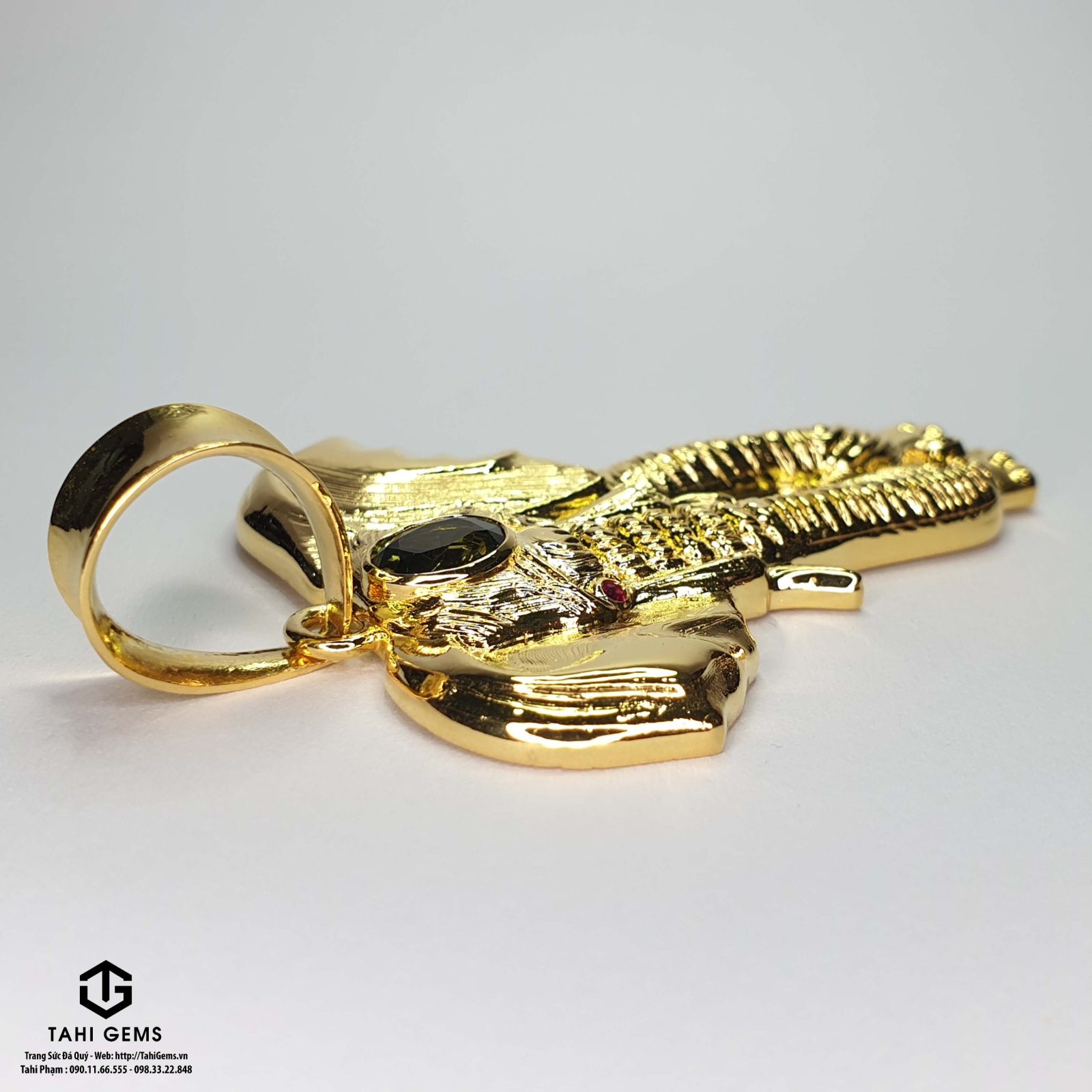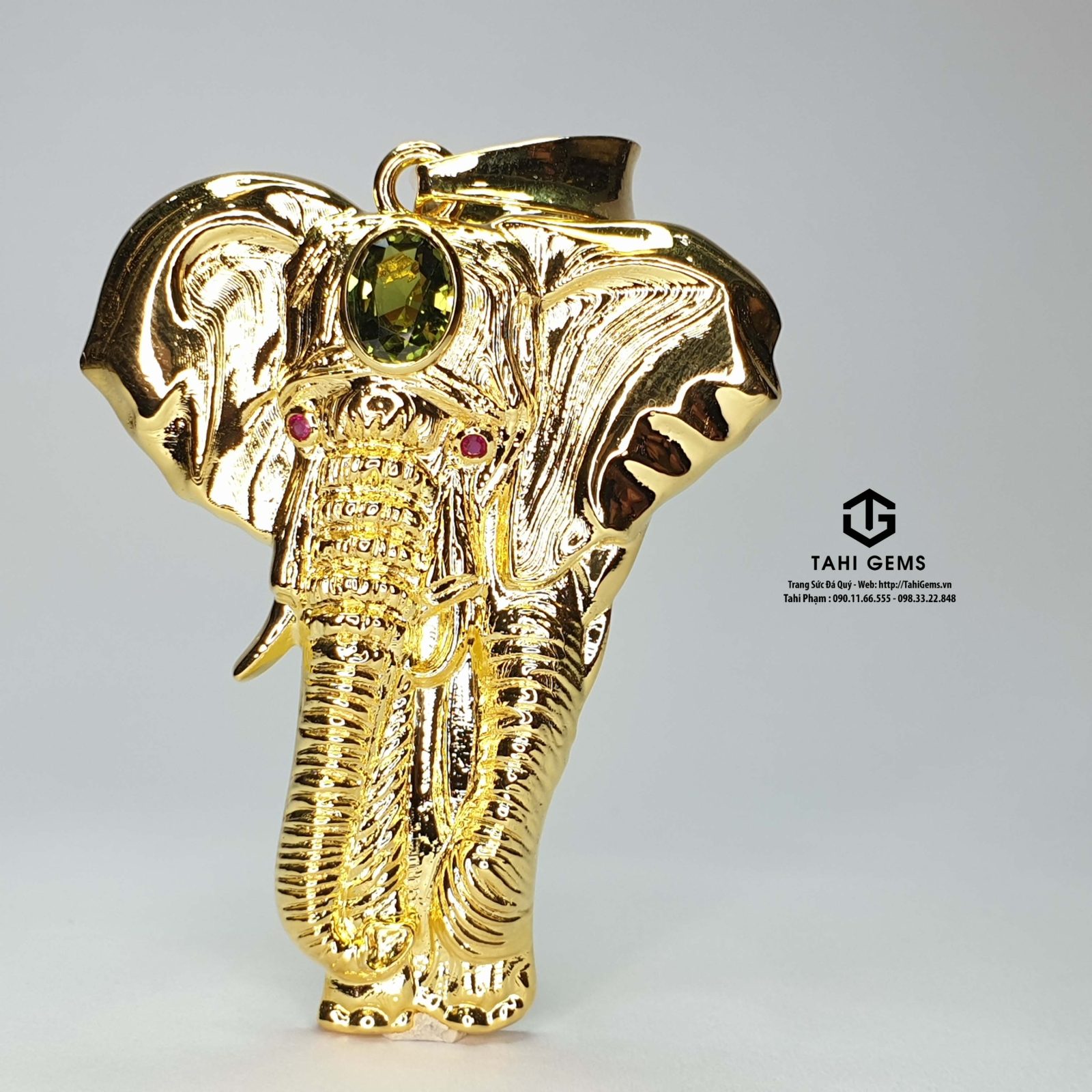 Anh Định mong muốn điều chỉnh viên Sapphire xanh chủ sang kích thước nhỏ gọn hơn, hài hòa với tổng thể mặt dây. TahiGems đã cẩn trọng tuyển chọn viên đá phù hợp và đặt viên chủ lên phần đầu mặt dây hình voi, tôn trọn vẻ đẹp và ý nghĩa của thiết kế.