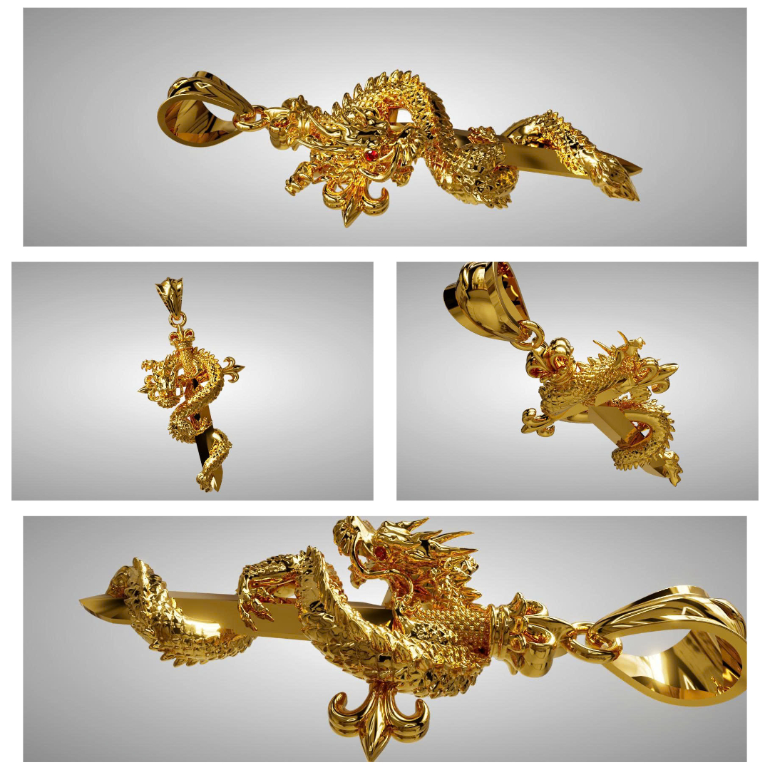 Mặt dây chuyền Rồng Kiếm là biểu tượng của sức mạnh và quyền uy. Hình tượng Rồng uốn lượn kết hợp với thanh kiếm tinh xảo tạo nên vẻ ngoài đầy khí phách, mạnh mẽ nhưng vẫn hài hòa, thu hút ánh nhìn. Thiết kế mặt dây tỉ mỉ, sắc nét, vừa nam tính vừa độc đáo, là món trang sức lý tưởng để khẳng định cá tính, thể hiện phong thái tự tin và sức mạnh nội tại của người đeo trong mọi khoảnh khắc quan trọng.
