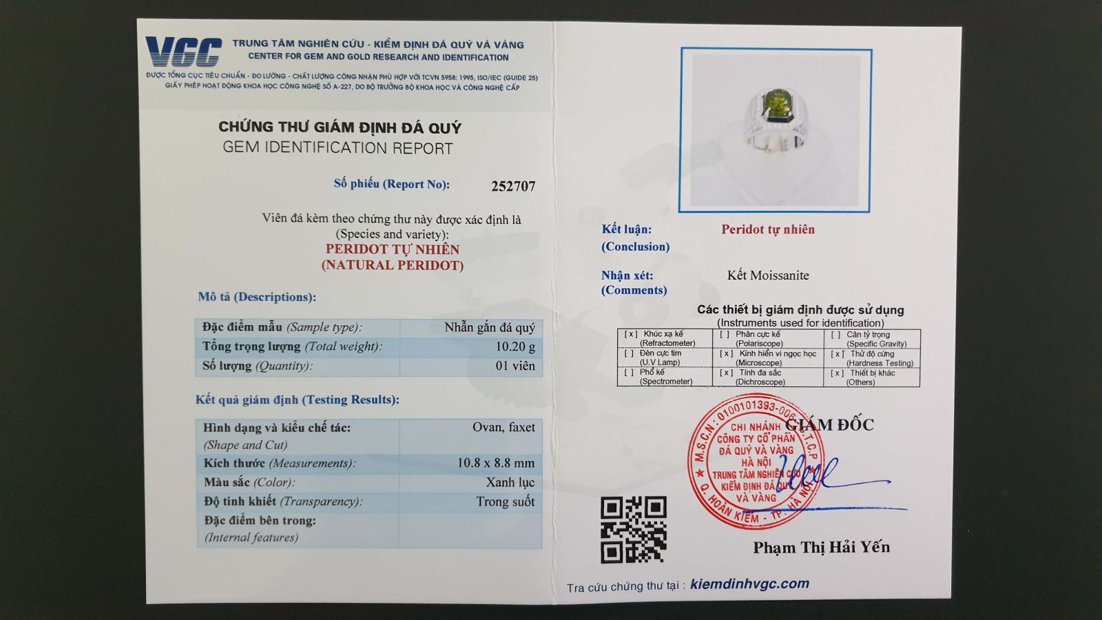 Để làm rõ hơn về hình dáng và cảm nhận thực tế, anh Linh đã gửi kèm video tham khảo mẫu nhẫn qua đường link YouTube (xem tại đây), trong đó thể hiện rõ cách phối màu vàng trắng với sắc xanh đặc trưng của Peridot – mang lại cảm giác tươi sáng, trẻ trung và đầy năng lượng.