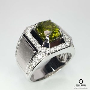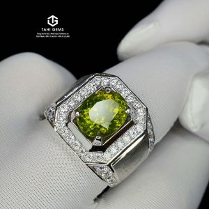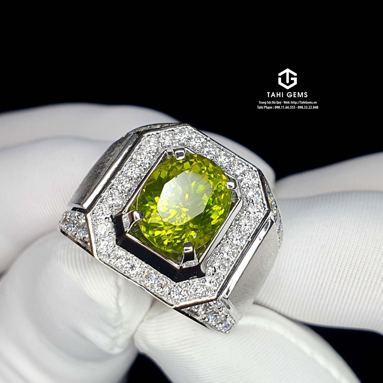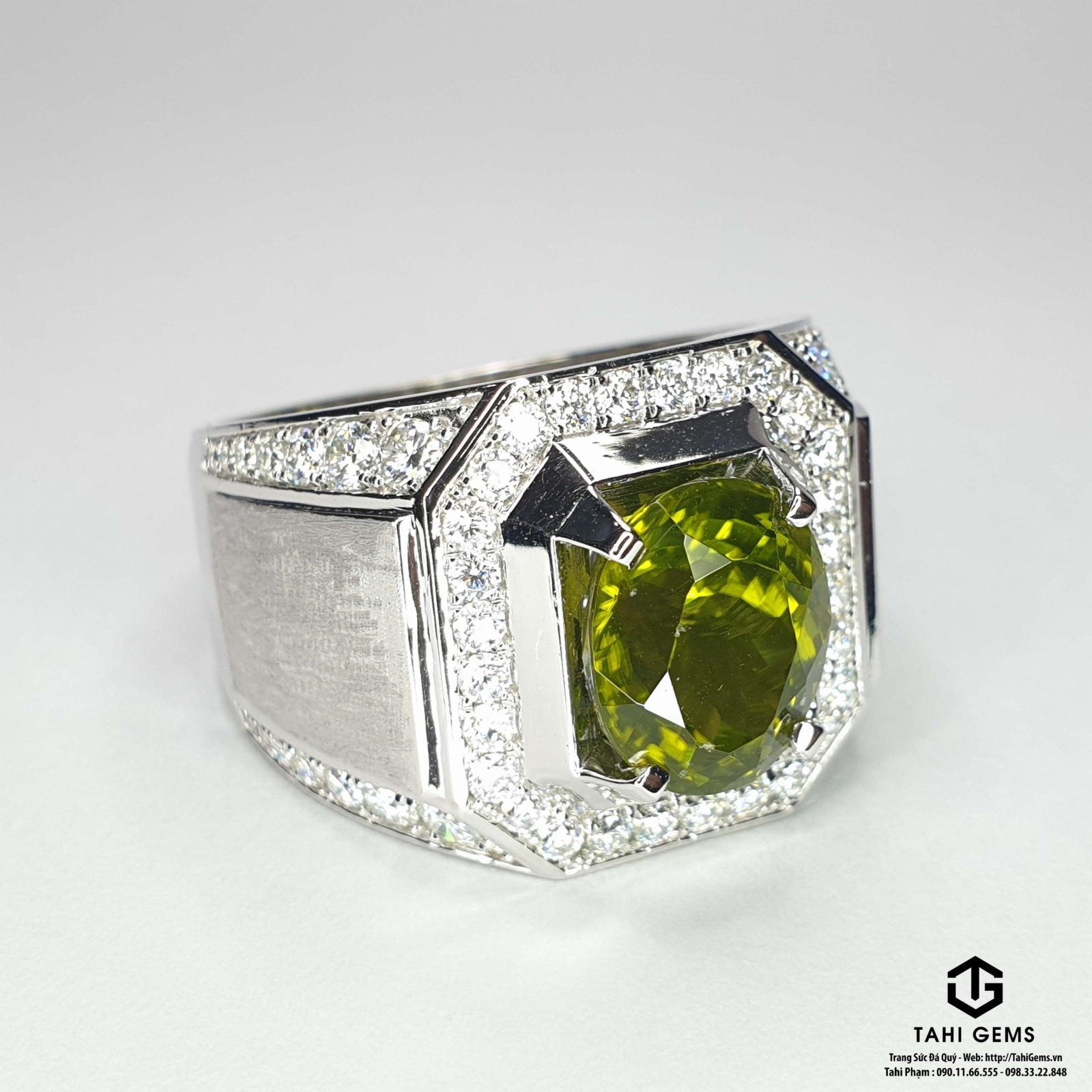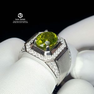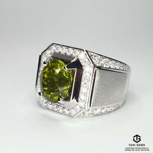 Anh hiện sở hữu một viên đá quý Peridot tự nhiên và mong muốn chế tác thành một chiếc nhẫn nam sang trọng, mang dấu ấn riêng nhưng vẫn đảm bảo sự tinh tế và chuẩn mực trong từng chi tiết. Sau khi tham khảo nhiều mẫu thiết kế tại TahiGems, anh đã lựa chọn mẫu Tahi 5116 – nhẫn nam vàng trắng đá quý Peridot kết hợp moissanite tấm làm hình mẫu để hiện thực hóa ý tưởng của mình.