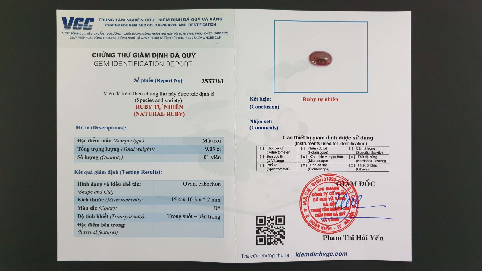 Đá chủ: Natural Ruby