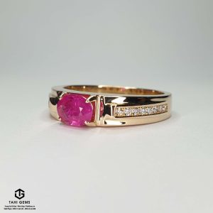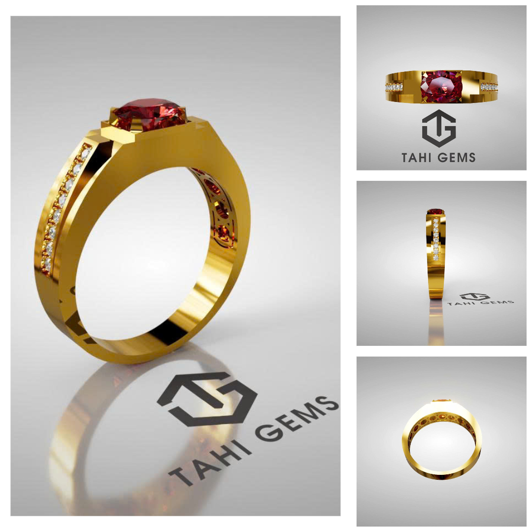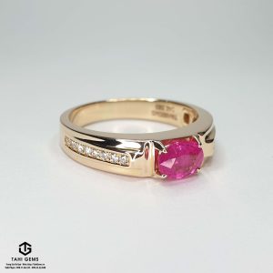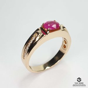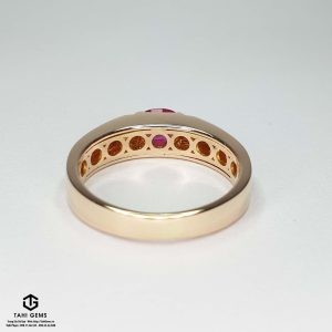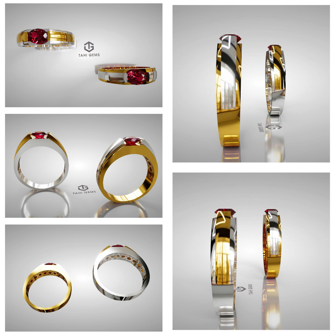 Anh định hướng chiếc nhẫn theo phong cách công sở gọn gàng, có thể đeo thường xuyên trong công việc hằng ngày nhưng vẫn giữ được sự chững chạc, lịch lãm của người đàn ông trưởng thành. Trên cơ sở đó, TahiGems xây dựng thiết kế với bố cục chắc chắn, ổ đá vững, mặt nhẫn cân đối, để viên Ruby trở thành điểm nhấn trung tâm mà không gây cảm giác nặng nề hay phô trương. Tổng thể chiếc nhẫn mang tinh thần điềm đạm, bền bỉ và ổn định, phản ánh rõ cá tính và quan điểm sống của anh Bình – đề cao giá trị lâu dài hơn những yếu tố hào nhoáng nhất thời.