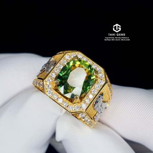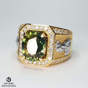 Anh Lợi ở Sài Gòn sau thời gian theo dõi các video của TahiGems đã tìm thấy viên Sapphire xanh Phúc – Lộc – Thọ mà anh cảm thấy đồng điệu. Sắc xanh trầm ấm, dáng cắt đẹp và năng lượng tinh khiết của viên đá khiến anh quyết định lựa chọn để chế tác thành một chiếc nhẫn mang biểu tượng mạnh mẽ: nhẫn Hổ.