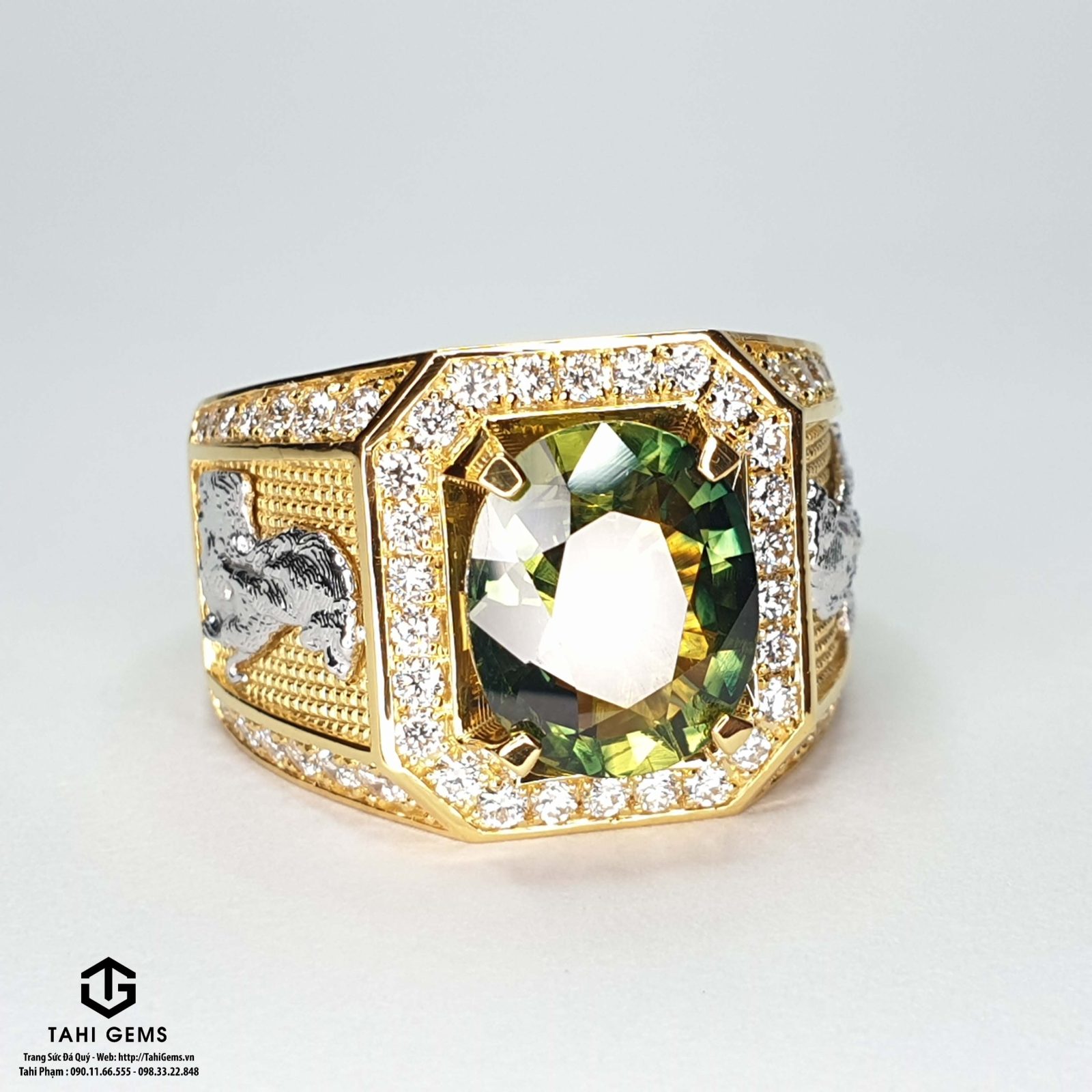 Tahi 5258 – nhẫn long phụng đá quý Tourmaline kết hợp kim cương