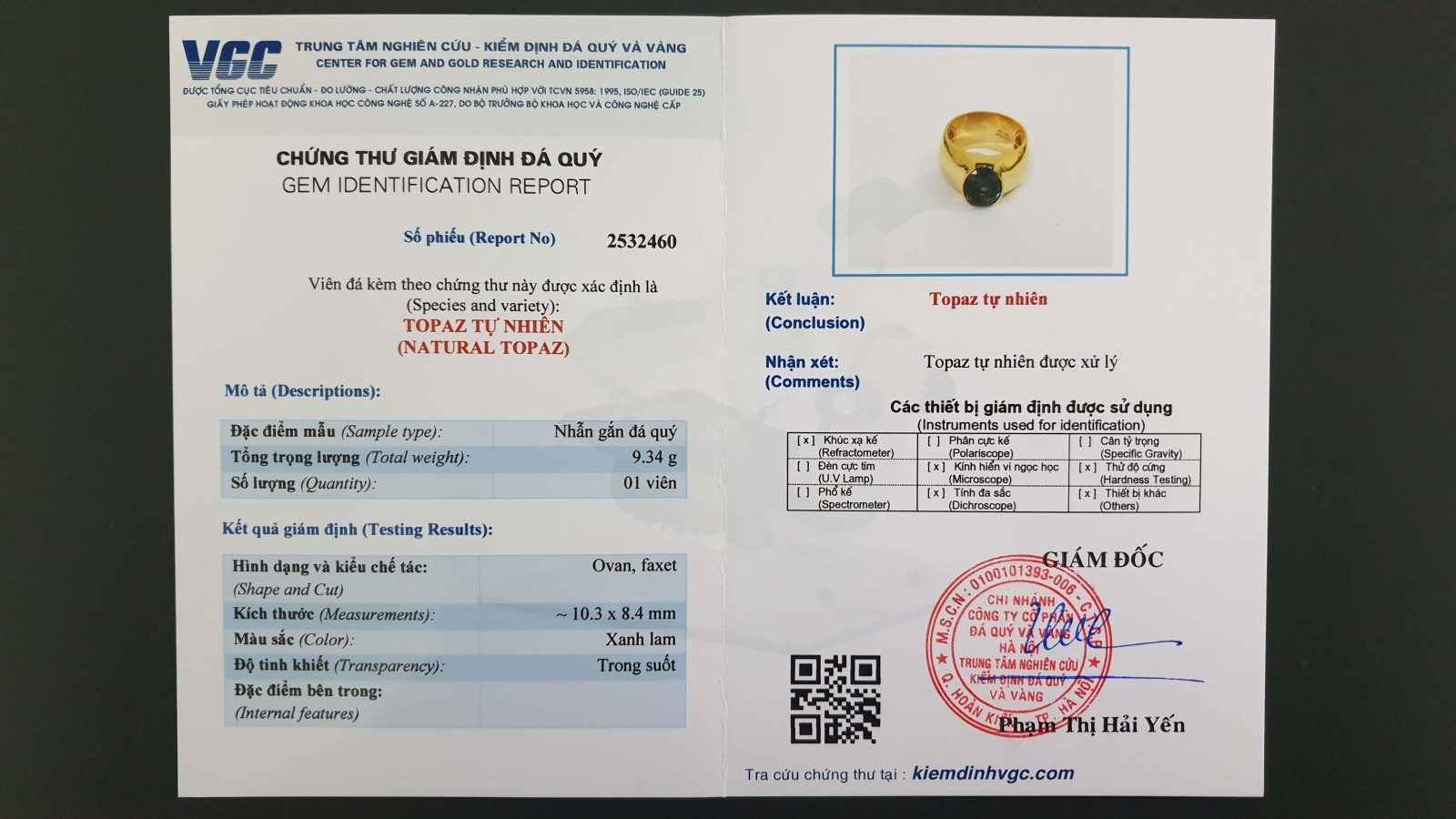 Tên sản phẩm: Nhẫn nam đá quý Topaz xanh – Tahi 7484