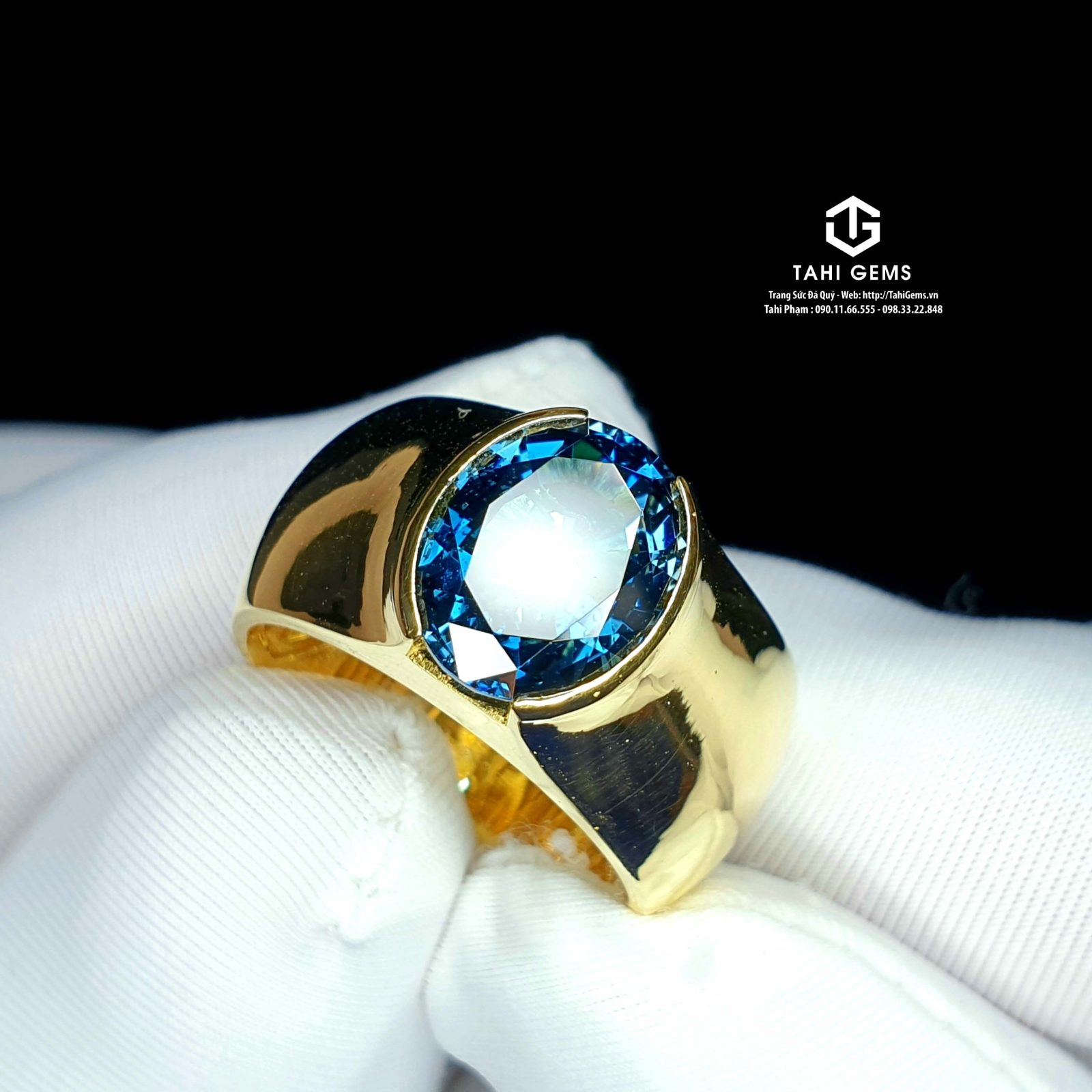 Nhẫn nam đá quý Topaz xanh - Tahi 7484