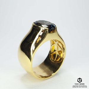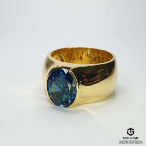 Về phần thiết kế, anh Linh đã lựa chọn mẫu nhẫn nam đá quý Tahi 7061 – một thiết kế được đánh giá cao nhờ vào sự kết hợp hài hòa giữa dáng nhẫn hiện đại và tính sang trọng từ đá chủ cùng các chi tiết phụ. Anh mong muốn thay đá Sapphire gốc của mẫu này bằng viên Topaz xanh theo đúng định hướng phong thủy và sở thích cá nhân.
