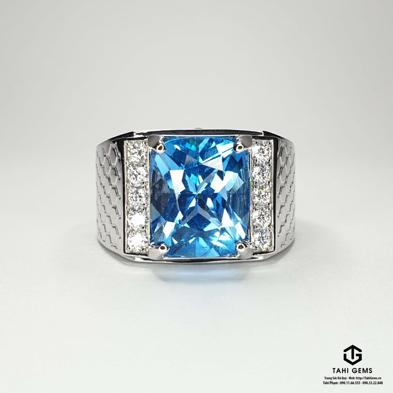 Nhẫn nam đá quý Topaz xanh – Tahi 7509
