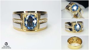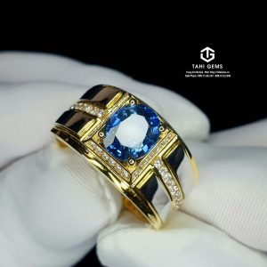Viên đá sapphỉe xanh Sri Lanka mà anh Hà lựa chọn không chỉ nổi bật với màu xanh thẳm dịu mắt, biểu trưng cho sự bình yên, trí tuệ và thanh lịch, mà còn được đánh giá cao về chất lượng – giác cắt sắc nét, độ trong với ánh sáng tuyệt đẹp. Mẫu nhẫn theo mã Tahi‑7016 mà anh đã chọn là thiết kế nam tính, hiện đại nhưng vẫn giữ được nét thanh nhã, phù hợp mang hàng ngày hoặc trong những dịp trang trọng.