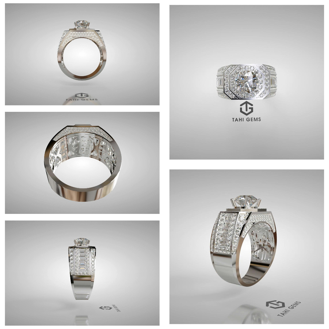 Sau khi tiếp nhận yêu cầu, TahiGems đã tiến hành nghiên cứu và lên phương án thiết kế riêng, đảm bảo tỷ lệ giữa viên đá lớn và khung nhẫn được cân đối, phần thân nhẫn đủ dày và chắc chắn để giữ đá an toàn nhưng vẫn tạo cảm giác đeo thoải mái. Mục tiêu của thiết kế là tạo nên một chiếc nhẫn đẳng cấp – nổi bật – bền vững theo thời gian, xứng tầm với giá trị của viên kim cương 8.1 ly mà anh Định đã lựa chọn.