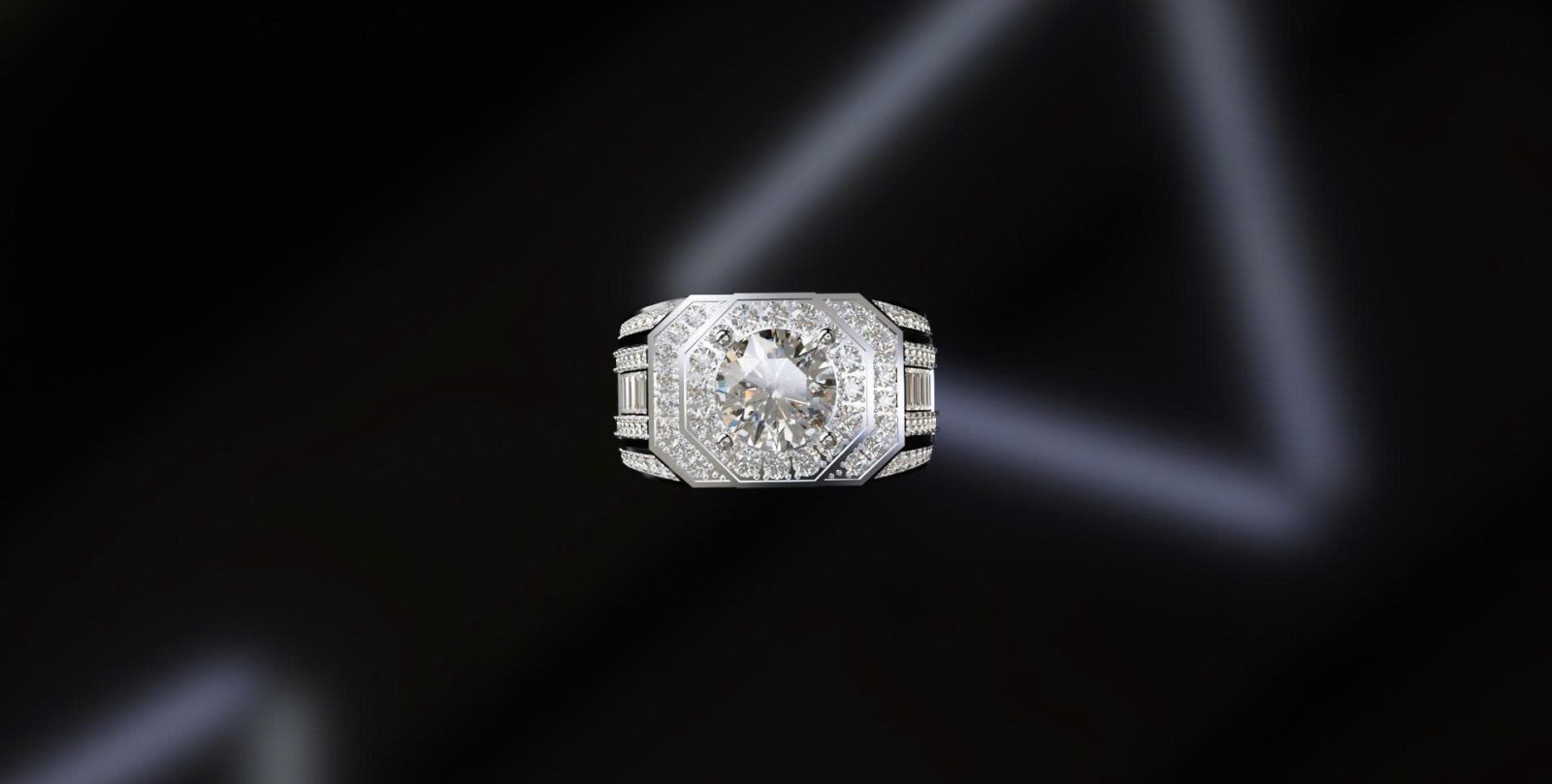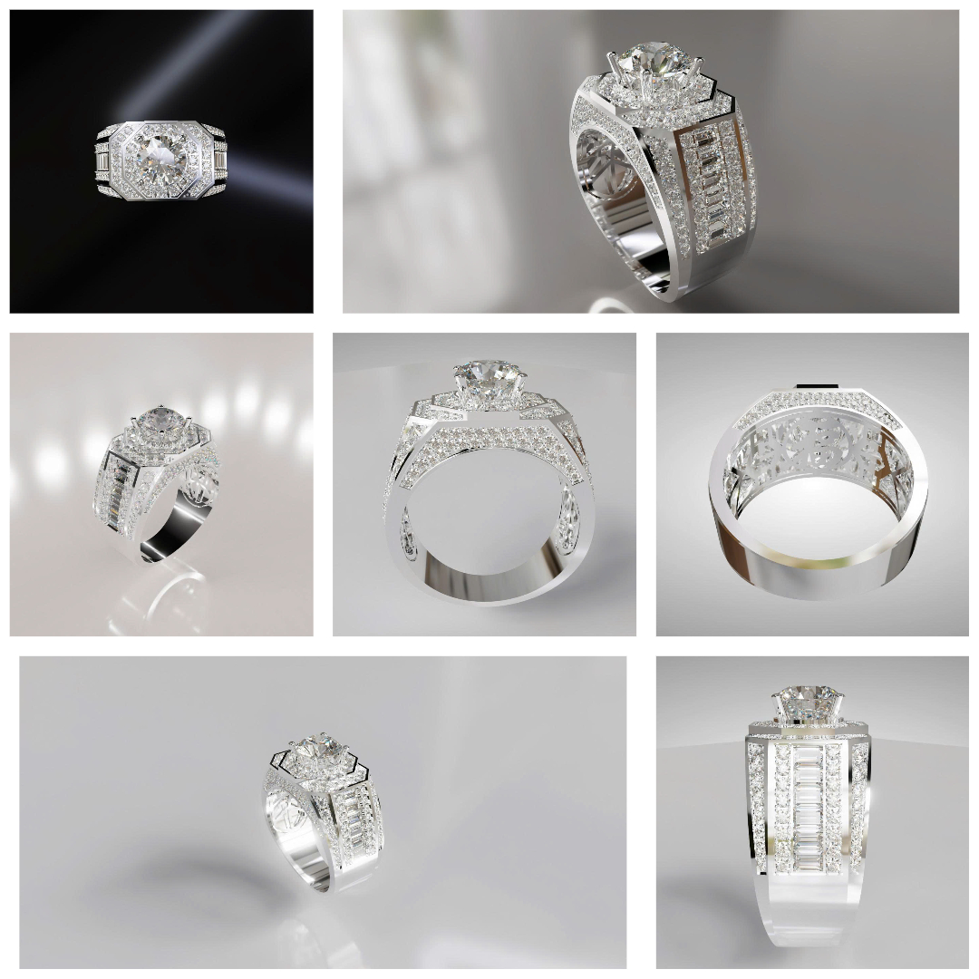 Lần này, anh tiếp tục tin tưởng và mong muốn thực hiện thêm 2 sản phẩm cao cấp, gồm một chiếc nhẫn nam kim cương và một đôi hoa tai kim cương thiên nhiên. Đối với đơn mã 7697, anh tập trung vào chiếc nhẫn nam kim cương 8.1 ly, một kích thước lớn, đòi hỏi thiết kế phải thật cân đối để vừa nổi bật, vừa giữ được sự nam tính và chắc chắn khi đeo.
