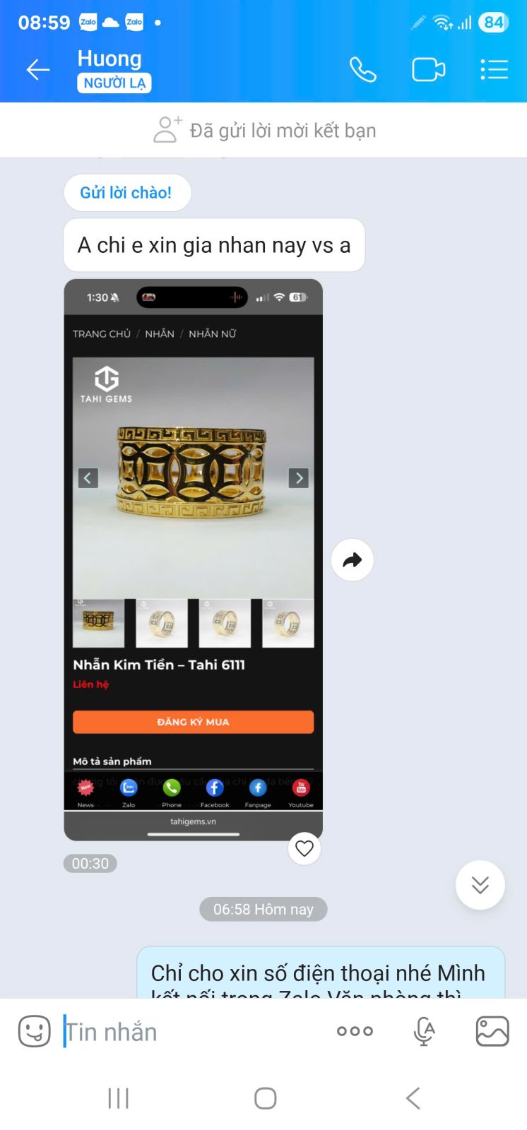 Chúng tôi nhận được yêu cầu của chị Hương bên Canada. Chị theo dõi mẫu nhẫn kim tiền của TahiGems và lựa chọn mẫu nhẫn để tặng chồng.