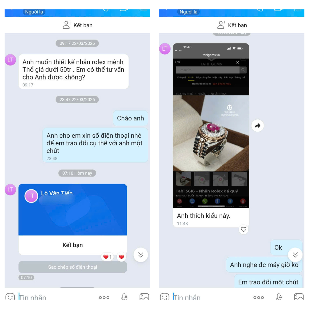 Anh Tiến đã liên hệ với TahiGems với mong muốn thực hiện một chiếc nhẫn nam phong cách Rolex, sử dụng đá quý phù hợp với mệnh Thổ, vừa mang ý nghĩa phong thủy tốt vừa thể hiện đẳng cấp và phong cách cá nhân.
