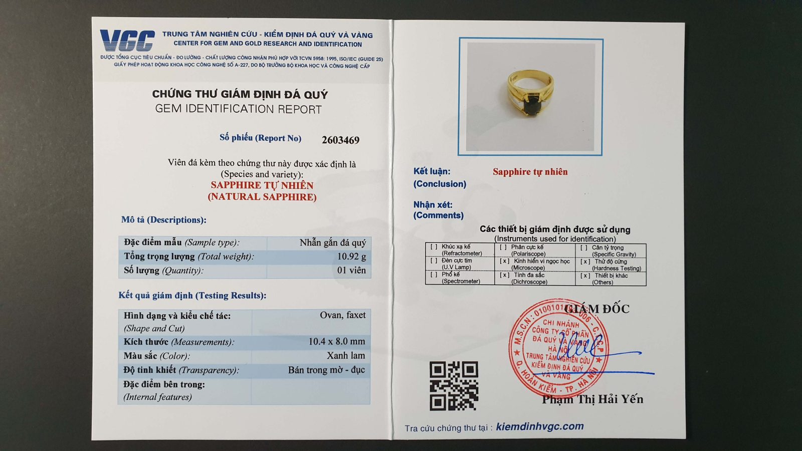 Vật liệu: Vàng Tahi 18k 750 – khối lượng: 2.715 chỉ