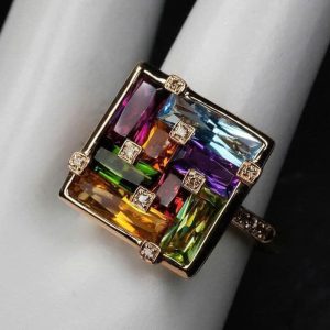 Đá quý Topaz, với vẻ đẹp tự nhiên và sự lấp lánh tuyệt vời, đã từ lâu được coi là biểu tượng của sự giàu có và quý phái. Màu sắc của Topaz có thể thay đổi từ vàng, xanh, đỏ, hồng đến trắng, tạo nên sự đa dạng và phong cách riêng cho mỗi chiếc nhẫn. Đặc biệt, màu xanh lam của Topaz rất phù hợp với những người mệnh Thủy và mệnh Mộc.