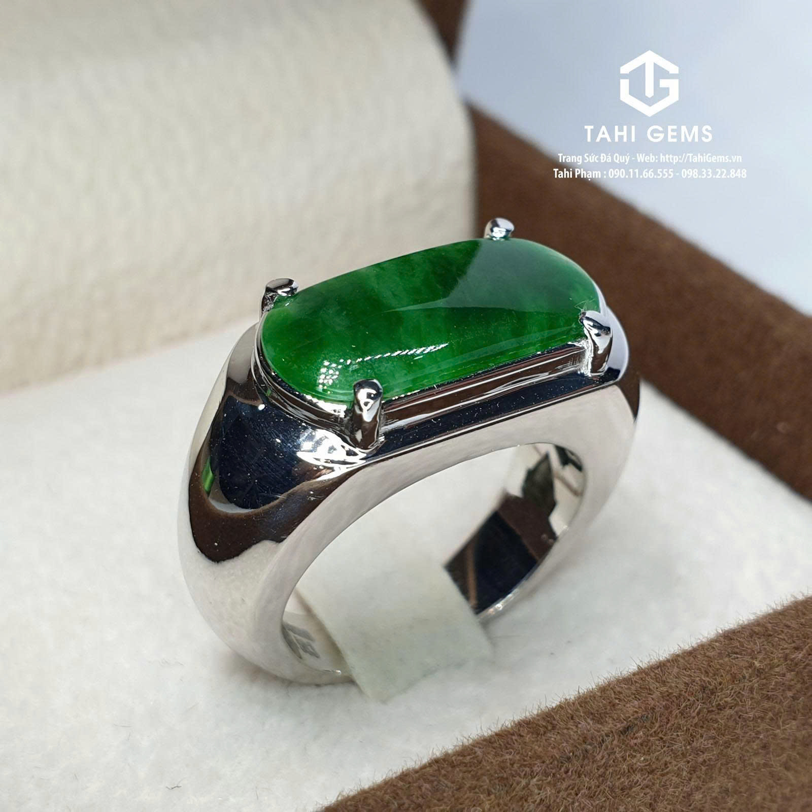 Nhẫn nam vàng trắng 14k đá quý Ngọc phỉ thúy – Tahi 7688