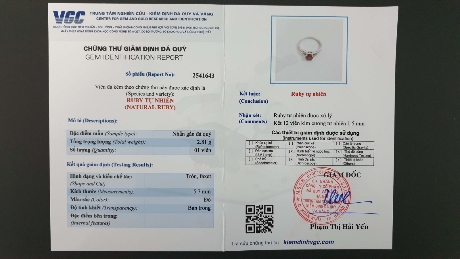 Tên sản phẩm: Nhẫn nữ đá Ruby – Tahi 7572