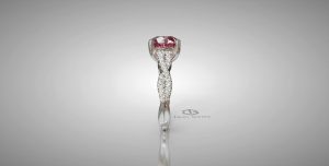 Dựa trên viên đá anh đã chọn, TahiGems tiếp tục tư vấn các kiểu dáng nhẫn nữ tương thích. Anh đã quyết định chọn mẫu nhẫn nữ trong hình — một thiết kế thanh lịch, tinh tế, giúp tôn trọn vẻ rực rỡ của viên Ruby mà vẫn giữ được sự mềm mại, nữ tính.