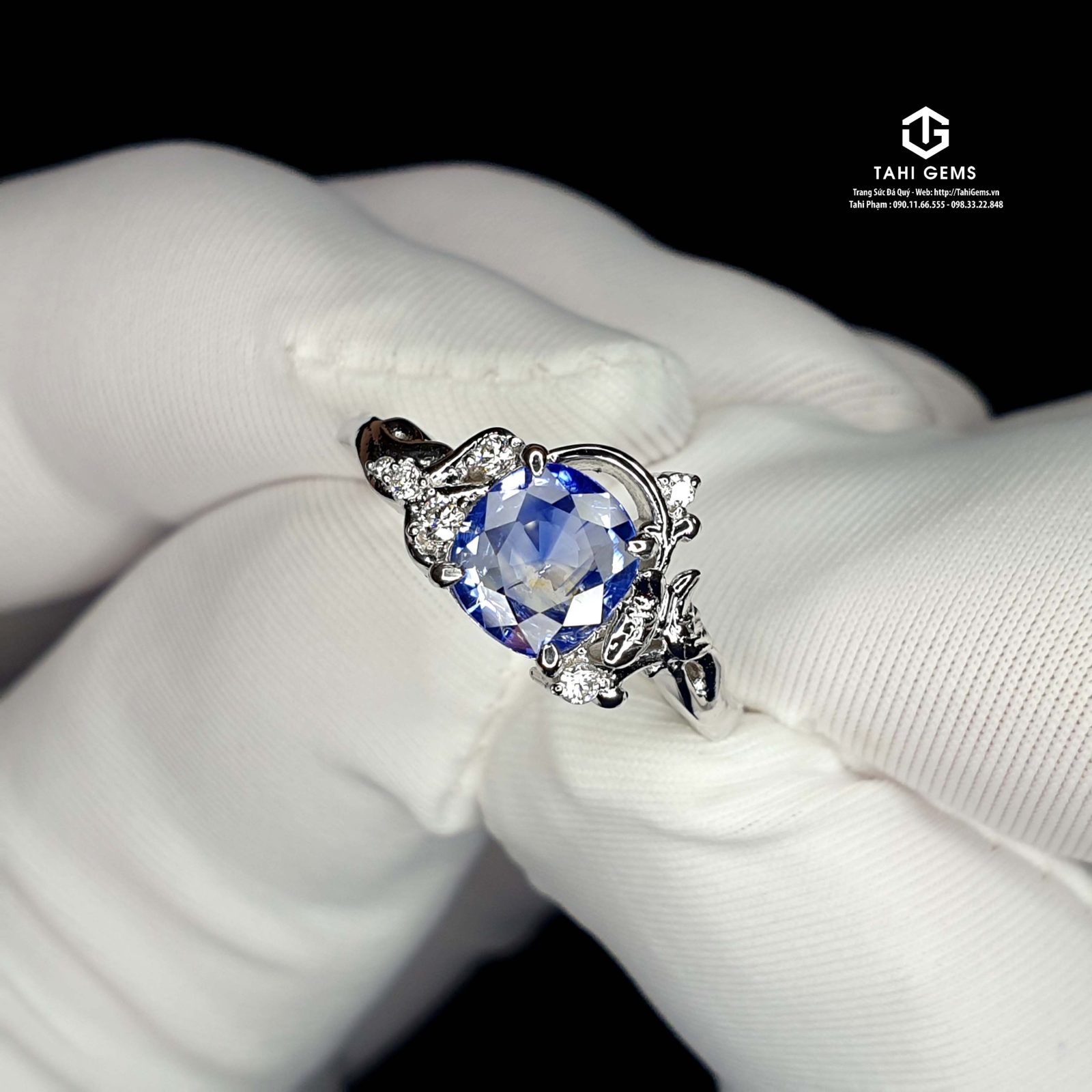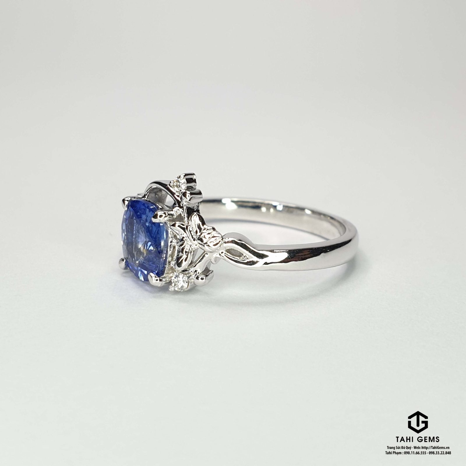 Quá trình sản xuất Nhẫn nữ đá quý Sapphire xanh dương – Tahi 7486