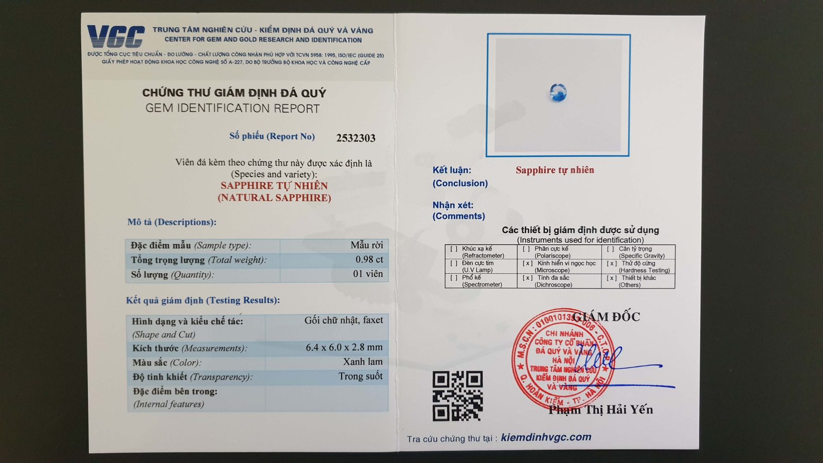 Khối lượng: 0.98 ct