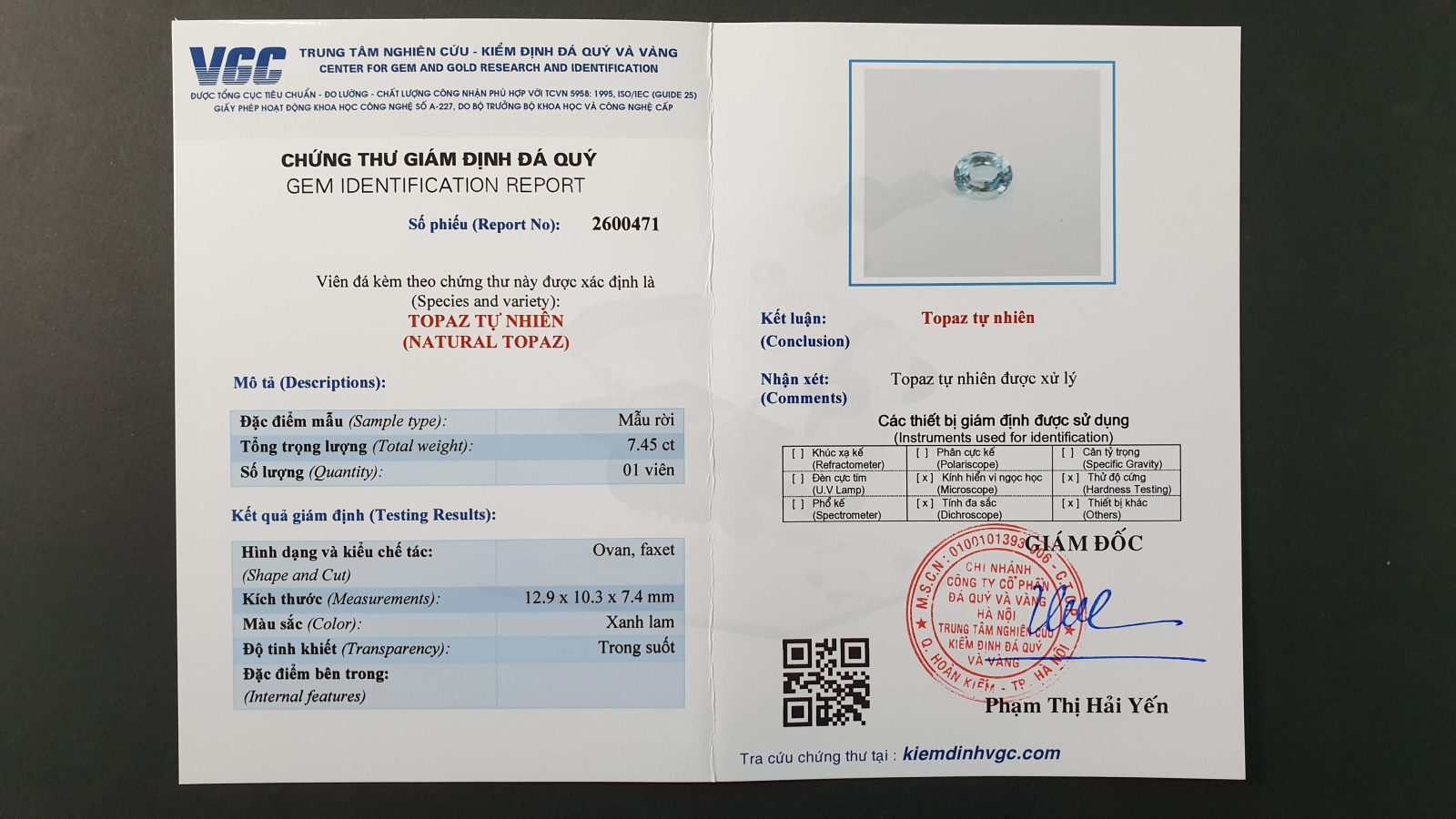 Để anh có thể yên tâm dù ở xa, TahiGems đã quay video cận cảnh từng viên Topaz, giúp anh quan sát rõ màu sắc và ánh đá; sau khi xem kỹ, anh đã chốt viên Topaz xanh mã TAHI-05013, đúng với tông màu anh mong muốn.