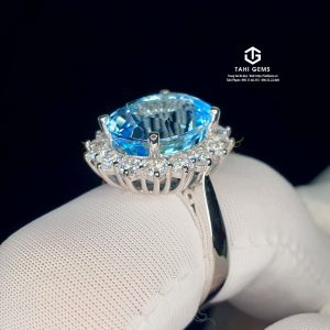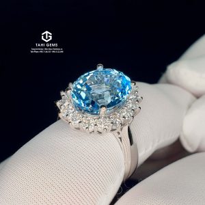Sau khi trao đổi, chúng tôi đã tư vấn nhiều phương án đá phù hợp về màu sắc, độ trong và ý nghĩa sử dụng, và cuối cùng thống nhất lựa chọn đá Topaz xanh tự nhiên – loại đá có sắc xanh trong trẻo, cảm giác mát lành và rất phù hợp với phong cách nhẫn nữ thanh lịch.