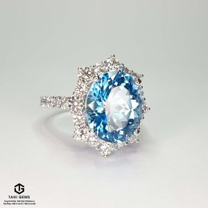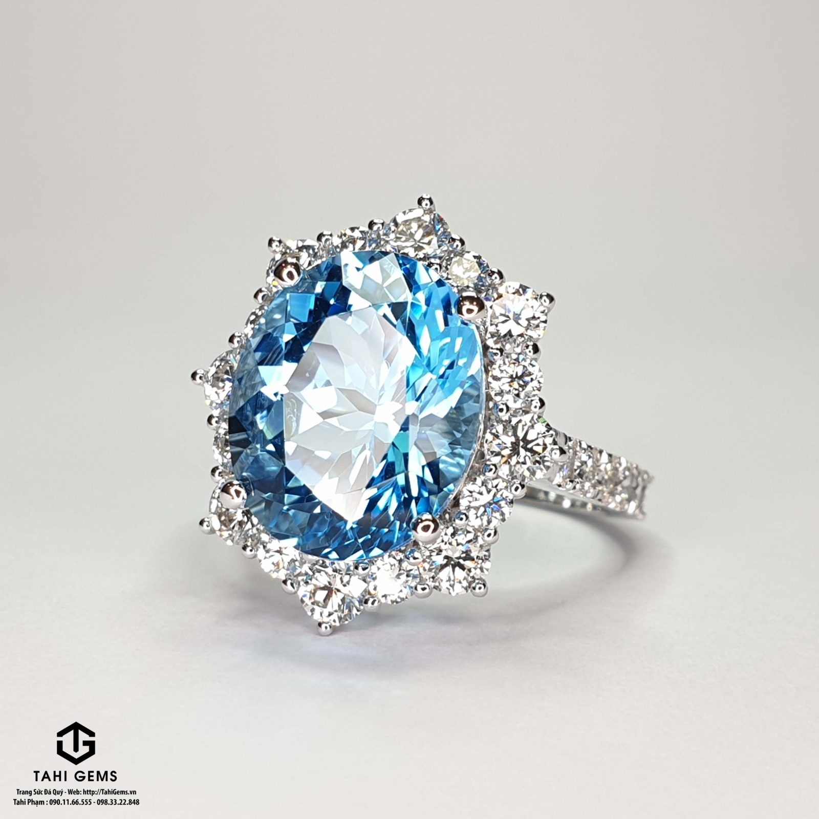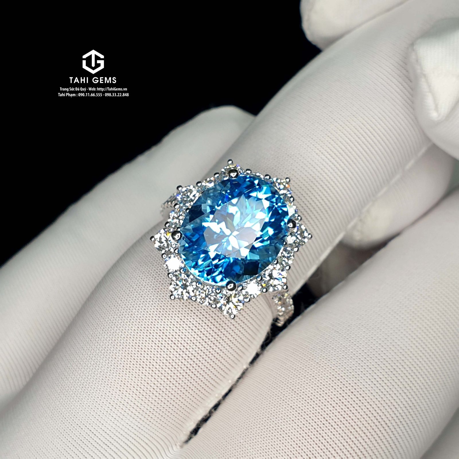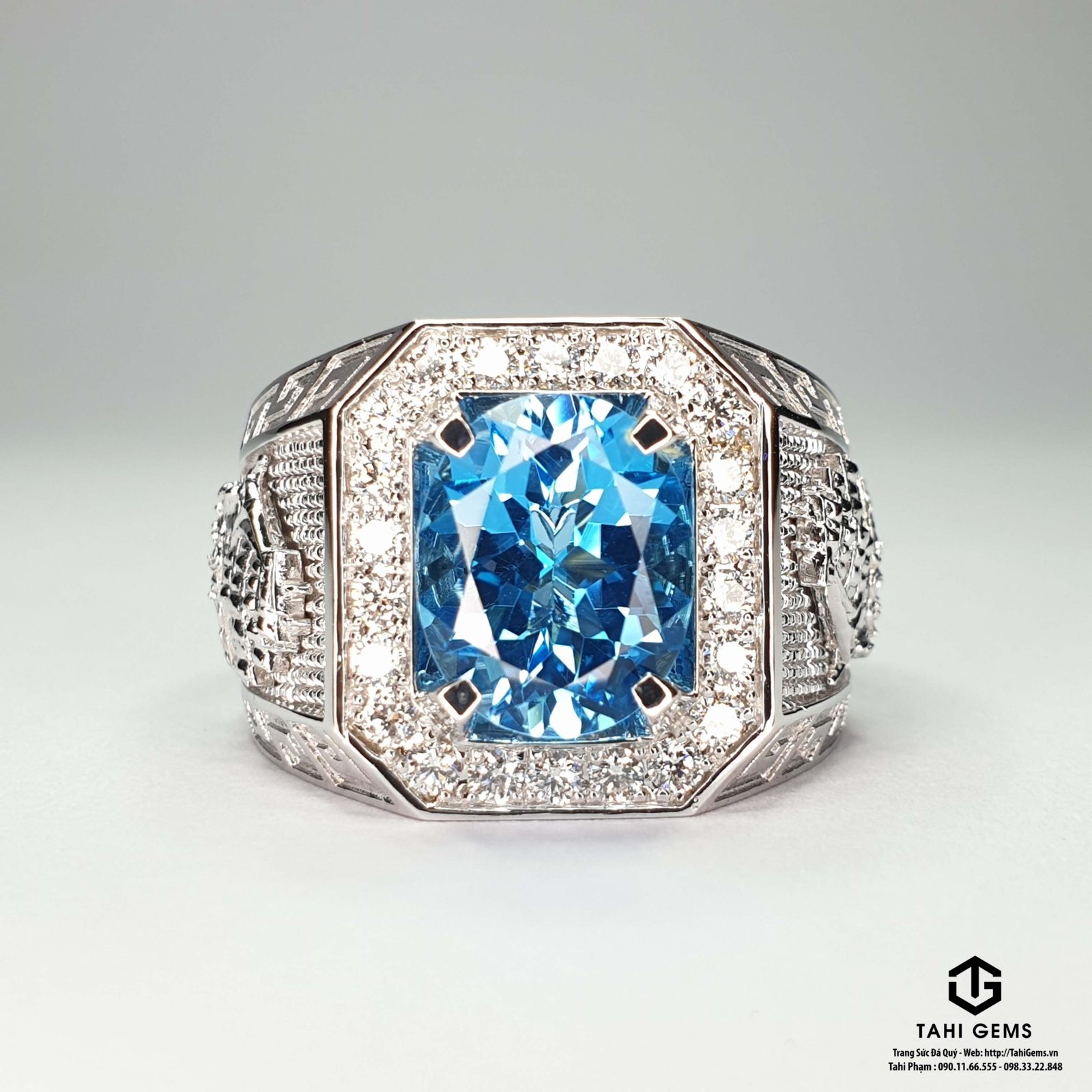 Sau khi cân nhắc kỹ lưỡng, chú lựa chọn đá Topaz xanh, bởi sắc xanh trong trẻo, tươi sáng của Topaz mang lại cảm giác nhẹ nhàng, thanh thoát nhưng vẫn đủ chiều sâu để tạo điểm nhấn khi đặt cạnh Sapphire.