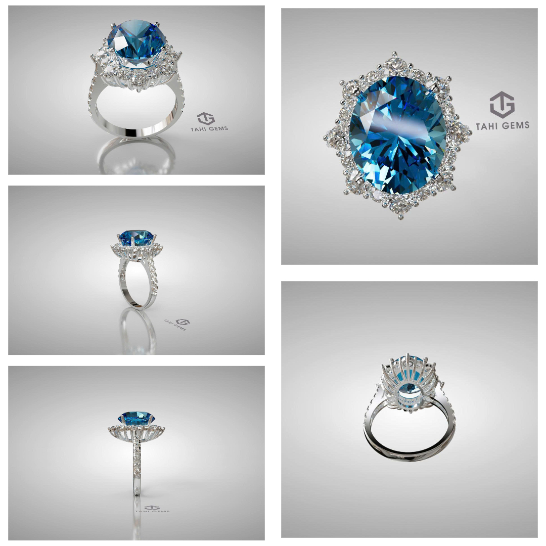 Từ mong muốn đó, đội ngũ TahiGems tiến hành tư vấn kỹ lưỡng về tông màu xanh phù hợp, độ đậm nhạt của viên Topaz để khi kết hợp cùng bộ dây chuyền Sapphire vẫn giữ được sự hài hòa tổng thể, tránh cảm giác lệch tông hoặc rời rạc. Chúng tôi phân tích kỹ từng yếu tố: từ ánh sắc của đá dưới các điều kiện ánh sáng khác nhau, tỷ lệ viên đá khi đặt trên nhẫn nữ, cho đến kiểu dáng ổ nhẫn sao cho vừa tôn được vẻ đẹp tự nhiên của viên Topaz, vừa đảm bảo sự mềm mại, tinh tế đúng tinh thần của một thiết kế dành cho nữ giới.