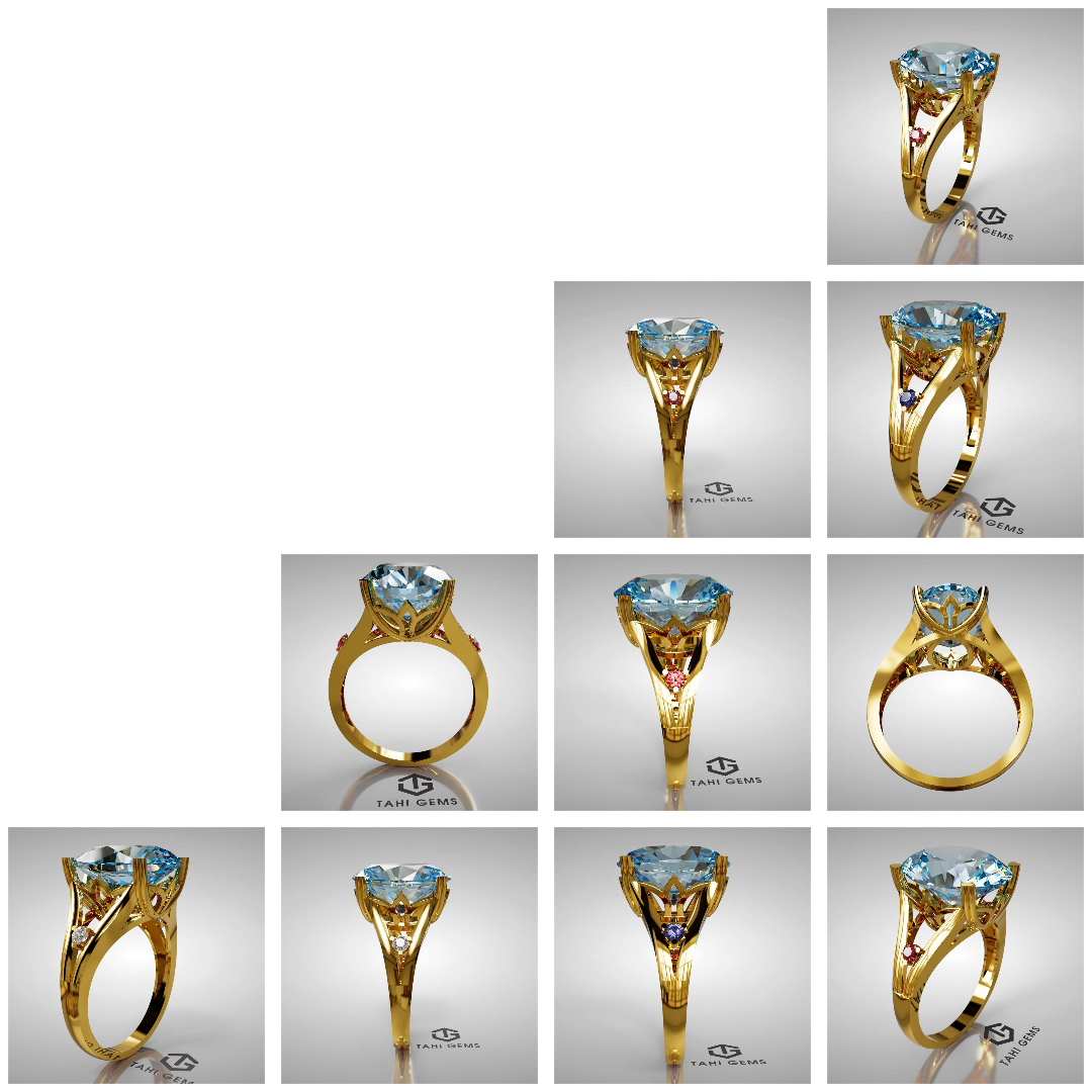 Sau quá trình trao đổi, chị bày tỏ mong muốn chiếc nhẫn có tổng thể thanh lịch, nhẹ nhàng nhưng vẫn phải tôn bật được vẻ đẹp của viên đá chủ. Trên cơ sở đó, TahiGems đã tiến hành tuyển chọn một viên Topaz xanh có sắc độ chuẩn, độ trong và độ lửa tốt, phù hợp để làm trung tâm thiết kế. Mỗi yếu tố về màu, độ tinh khiết và mặt cắt đều được cân nhắc kỹ nhằm đảm bảo khi lên nhẫn, viên đá đạt được hiệu ứng ánh sáng hài hòa và sang trọng.