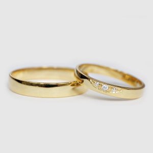 Kiểu dáng: Cặp nhẫn được thiết kế theo phom dáng Classic Band với bề mặt nhẵn mịn và các cạnh được bo tròn mềm mại, mang lại cảm giác vô cùng thoải mái khi đeo hàng ngày.