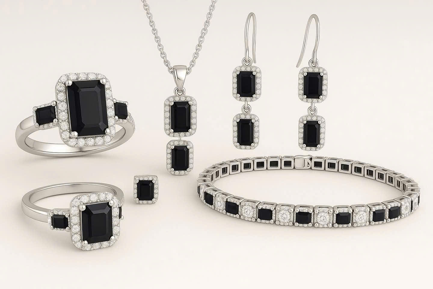 🖤 Mô Tả Bộ Trang Sức Đá Quý Phong Thủy Màu Đen – Quyền Lực, Bí Ẩn và Bảo Vệ
