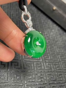 Mặt dây chuyền này là một tuyệt phẩm trang sức mang đậm ý nghĩa văn hóa và phong thủy phương Đông. Viên Phỉ Thúy được chế tác dạng Bi Disc (hình tròn dẹt), tượng trưng cho Sự Viên Mãn, Hoàn Hảo và Trọn Vẹn. Màu xanh lục bảo thủy tinh rực rỡ mang đến nguồn năng lượng dồi dào, biểu trưng cho Sự Giàu Có, Sức Khỏe và Trường Thọ.