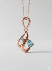 - Mặt dây có dạng hình học cách điệu, các đường cong đan chéo như một “vũ điệu” xoay quanh viên đá trung tâm.