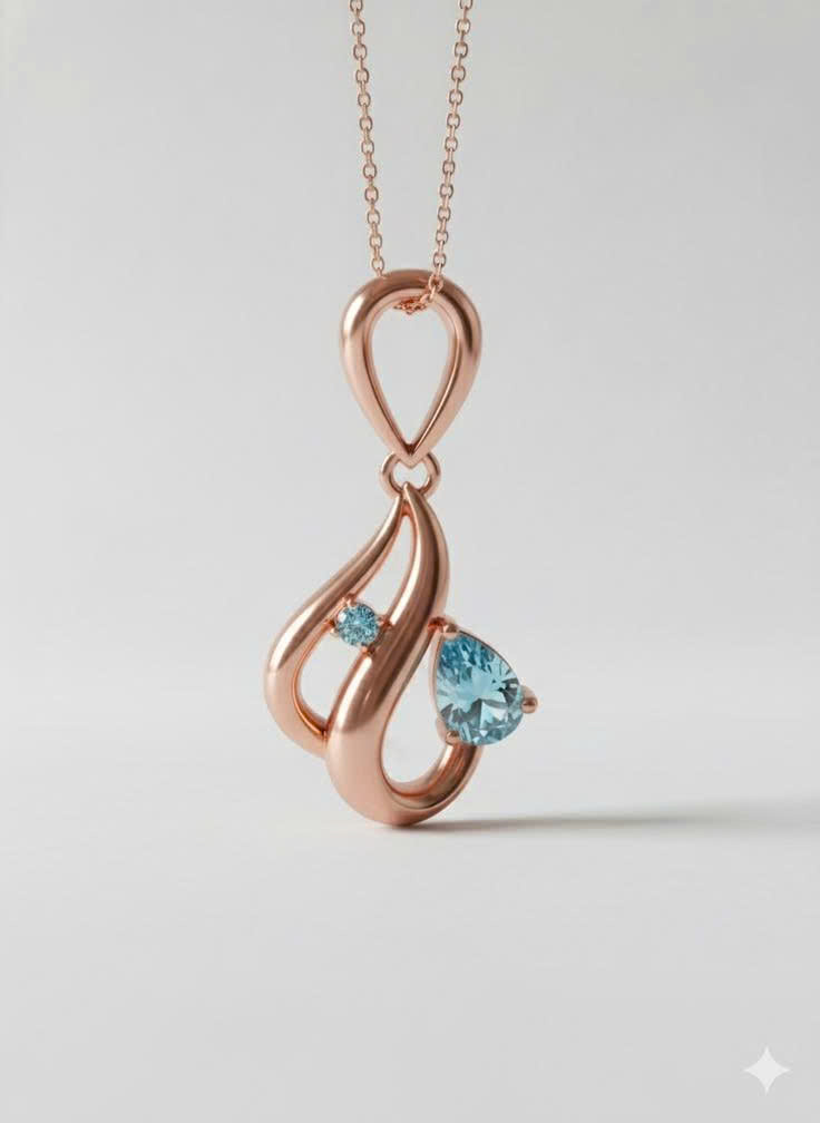 - Mặt dây dạng giọt nước cách điệu với hai đường cong đan nhẹ vào nhau, tạo cảm giác mềm mại và uyển chuyển.