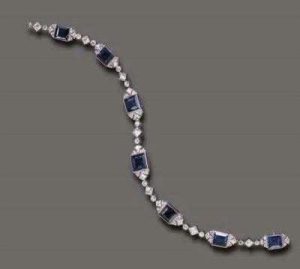 Chiếc lắc tay này là một tuyệt phẩm trang sức mang phong cách Art Deco (Nghệ thuật Trang trí) của thập niên 1920-1930, kết hợp sự tương phản tinh tế giữa Sapphire Xanh Đậm và Kim Cương trắng. Nó đại diện cho Sự Thanh Lịch, Quyền Lực và Trí Tuệ Sâu Sắc.