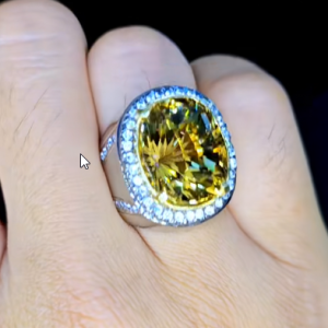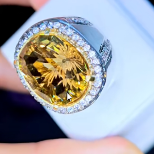 Chiếc nhẫn được chế tác thủ công tỉ mỉ từ kim loại quý cao cấp, kết hợp viên Citrine cỡ lớn dạng giác cắt tinh thể pha lê, bao quanh bởi viền đá tấm kim cương nhân tạo tạo nên hiệu ứng ánh sáng lấp lánh, sang trọng và đầy cuốn hút. Thiết kế bản to, mặt nhẫn vuông góc cạnh mạnh mẽ, tôn lên khí chất tự tin, quyền lực – phong cách đặc trưng của những quý ông thành đạt.