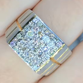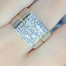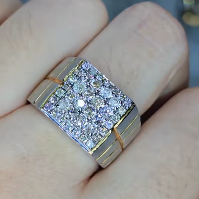 Chiếc nhẫn kim cương trắng TahiGems là sự kết hợp tinh tế giữa nghệ thuật chế tác trang sức cao cấp và giá trị phong thuỷ sâu sắc. Lấy cảm hứng từ vẻ đẹp vĩnh cửu của kim cương – biểu tượng của sự kiên định, minh triết và thịnh vượng, sản phẩm được thiết kế với mặt nhẫn bản lớn, khảm nhiều viên kim cương trắng tinh khiết tạo nên hiệu ứng ánh sáng rực rỡ, tôn lên phong thái đĩnh đạc của người sở hữu.