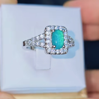- Đá quý và Kỹ thuật cắt: Viên đá nổi bật với kỹ thuật cắt Concave Cut (giác lõm) hình cánh quạt hoặc tia nắng phức tạp, tạo ra hiệu ứng quang học tuyệt đẹp, khiến viên đá dường như phát sáng từ bên trong. Sắc xanh lá cây là màu của sự sống, sự tăng trưởng, phát triển và sức khỏe.