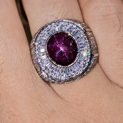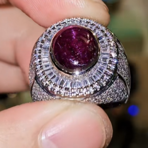 - Loại Đá (Dự đoán): Dựa trên màu sắc đỏ tím đậm, viên đá chủ có thể là Ruby sao (Star Ruby), Garnet, hoặc Spinel (hoặc một loại đá thạch anh tím chất lượng cao, tuy nhiên với độ bóng và hiệu ứng đặc biệt như trong ảnh thì khả năng là Ruby hoặc Spinel sẽ cao hơn, mang lại giá trị và năng lượng cao cấp).