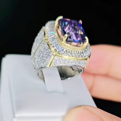 - Đá Quý và Kiểu cắt: Viên đá chủ được cắt theo kiểu Radiant Cut hoặc Cushion Cut (hình chữ nhật hoặc vuông bo góc) với nhiều giác cắt, tối ưu hóa sự lấp lánh và khả năng chuyển màu của viên đá.