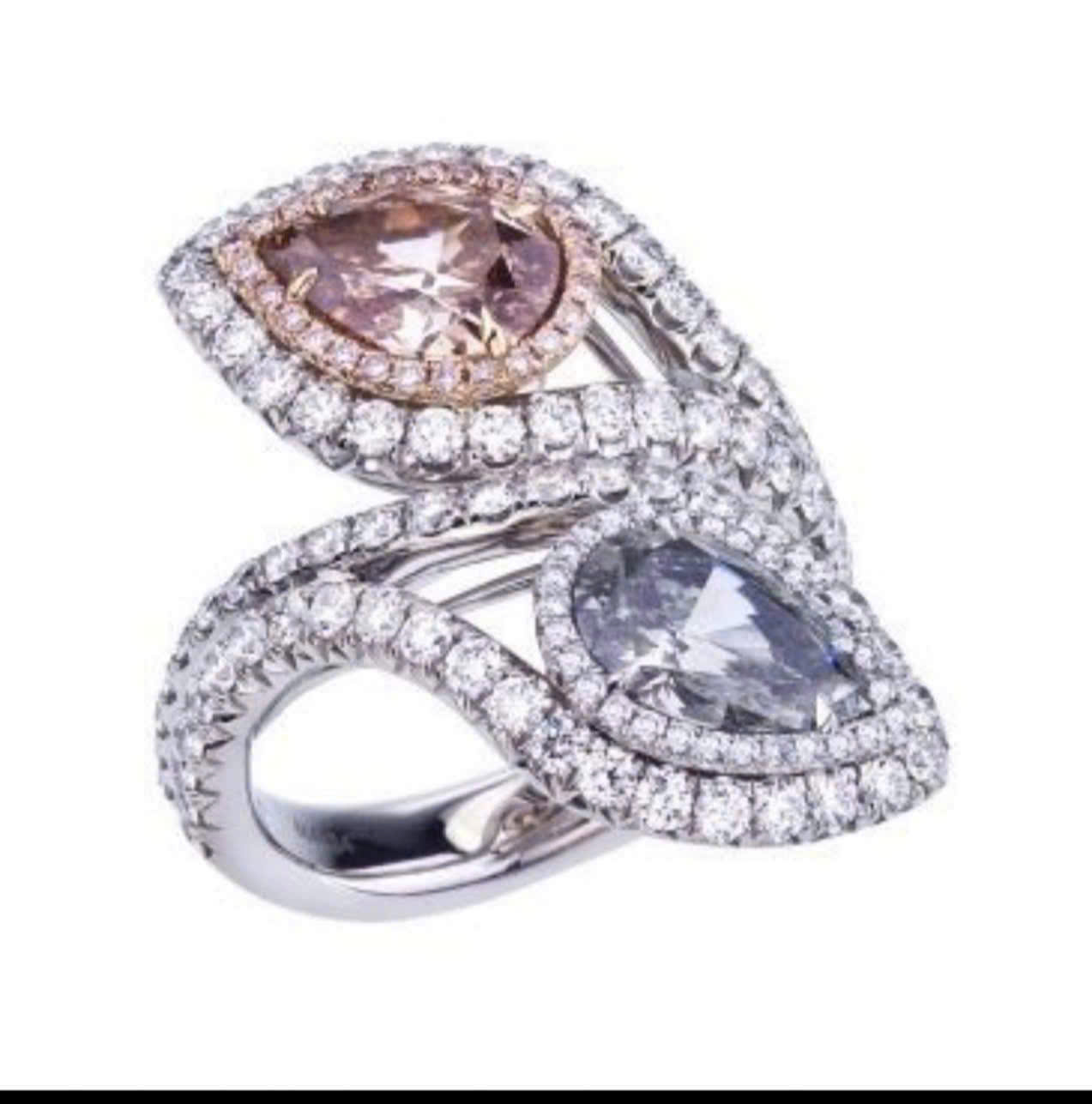 - Dòng sản phẩm: Nhẫn Đôi Đá Quý (Toi et Moi/Two-Stone Ring) cách điệu hoặc Nhẫn Cocktail (Cocktail Ring). Thiết kế này đặc biệt tập trung vào việc tạo ra khối lượng lớn, sự lấp lánh và đường nét uốn lượn mềm mại.