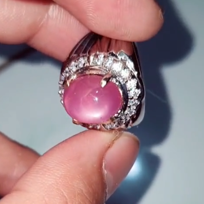 - Phối Màu Tương Phản: Xung quanh viên đá Tím huyền bí là lớp viền kép với những viên đá tấm lấp lánh (kim cương tấm/Moissanite/đá CZ) màu trắng và vàng, tạo hiệu ứng thị giác mạnh mẽ, tôn lên vẻ đẹp quyền lực và sang trọng.