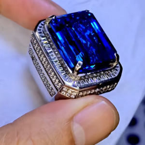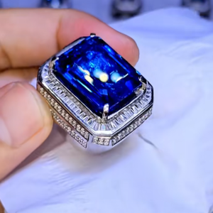 - Kim Loại Quý: Nhẫn được chế tác từ vàng trắng hoặc bạc cao cấp (có thể mạ Rhodium), tạo sự tương phản hoàn hảo với màu xanh thẳm của đá chủ.