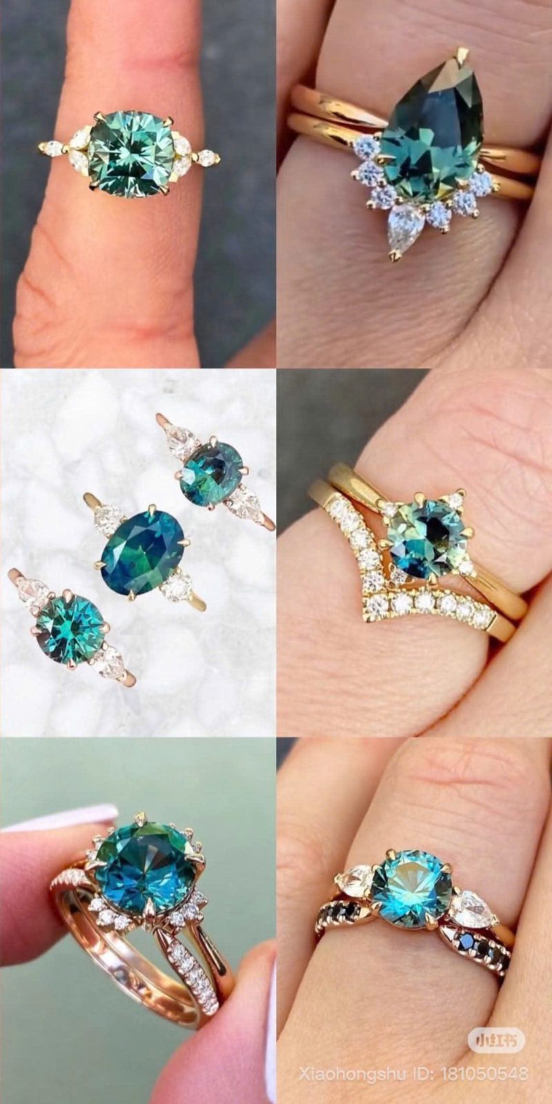 - Vật Liệu: Viên đá chủ mang màu sắc độc đáo nằm giữa xanh dương và xanh lá, thường là Sapphire đa sắc (Parti Sapphire) hoặc Tourmaline xanh lục-lam (Teal Tourmaline). Đây là những viên đá quý hiếm, thể hiện sự khác biệt và đẳng cấp của người đeo.