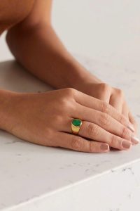 - Thiết kế nhẫn Signet (nhẫn dấu ấn) từ xa xưa đã là biểu tượng của Địa Vị và Quyền Lực. Kết hợp với màu xanh lục, chiếc nhẫn thể hiện sự sang trọng, lịch lãm và bản lĩnh của người đeo.