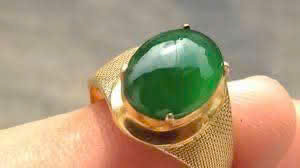 - Viên Đá Chủ: Đá quý màu Xanh Lục Đậm (có thể là Ngọc Cẩm Thạch, Ngọc Lục Bảo/Emerald, hoặc Onyx/Agate tùy theo chất liệu). Viên đá được cắt mài Cabochon Oval (bề mặt trơn, cong, không giác cắt) lớn.
