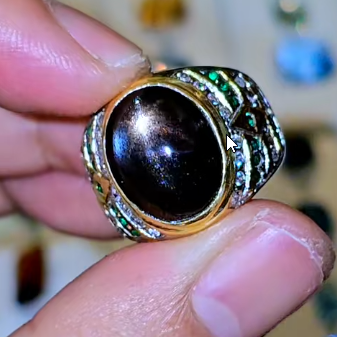 - Đế Nhẫn Uy Nghi: Phần thân và đế nhẫn có bề mặt rộng, dày dặn, thường sử dụng chất liệu vàng trắng hoặc Platin với lớp xi màu tối, càng làm nổi bật độ rực sáng của Kim Cương và sắc xanh của Ngọc Lục Bảo. Tổng thể tạo nên một chiếc nhẫn có trọng lượng, đầy uy lực, xứng tầm Đế Vương.