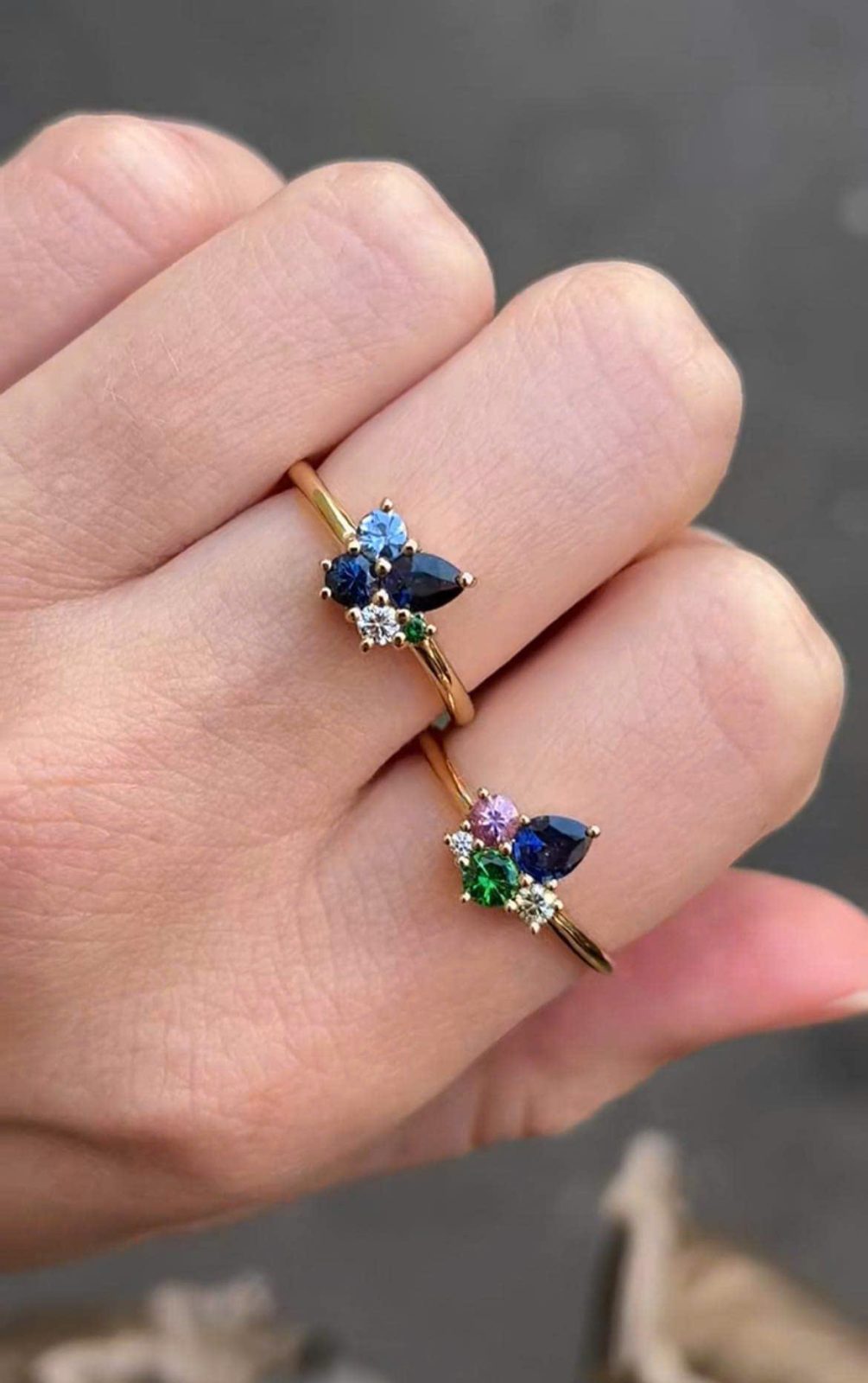 Cặp nhẫn này rất phù hợp để đeo hàng ngày (daily wear), mang lại vẻ ngoài trẻ trung, tươi tắn và thời trang nhờ vào sự kết hợp hài hòa của nhiều loại đá quý đa sắc.